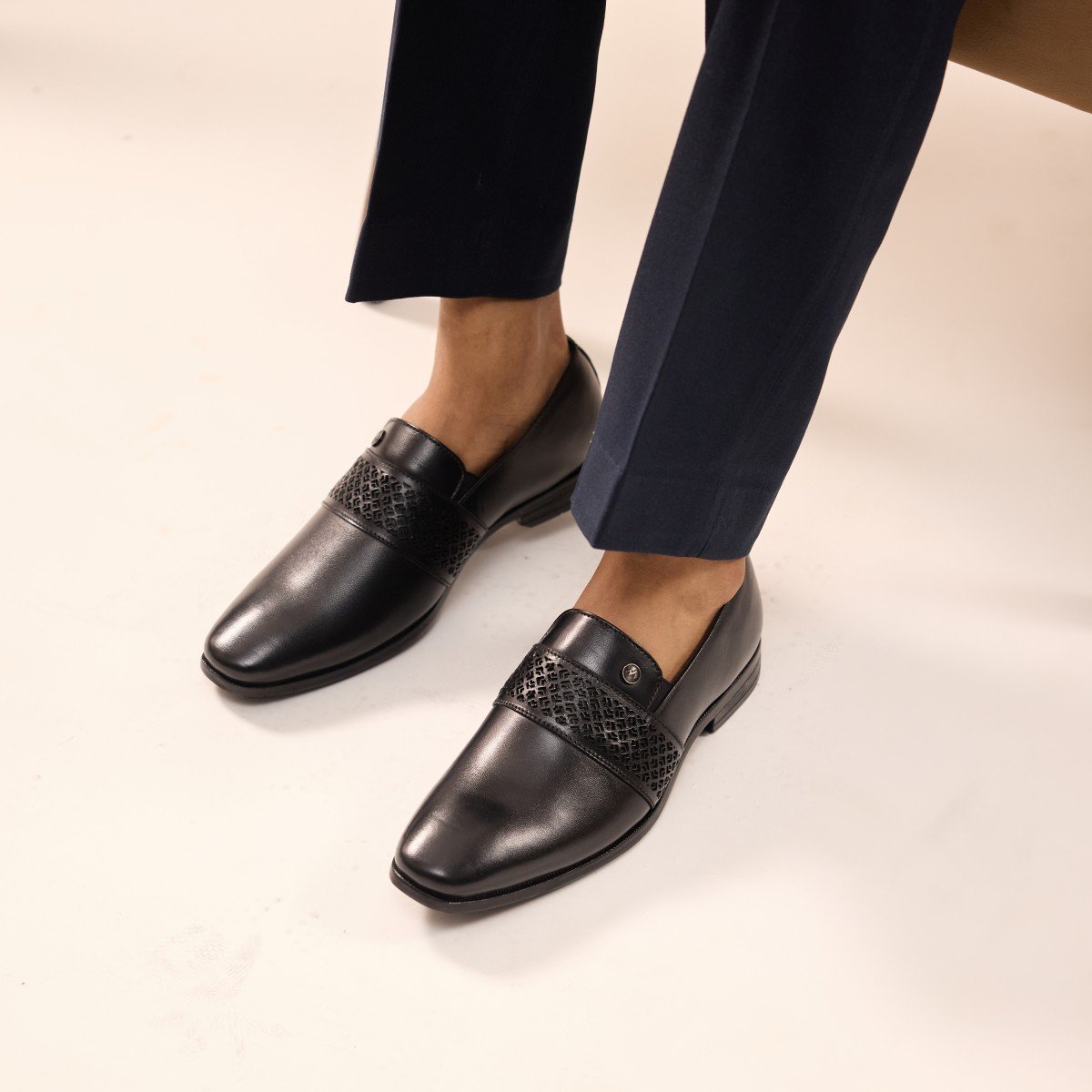 These NSR slip-on shoes feature a sleek design with intricate laser-cut detailing, offering both sophistication and comfort. Ideal for formal occasions, they provide a modern twist to classic formal footwear.